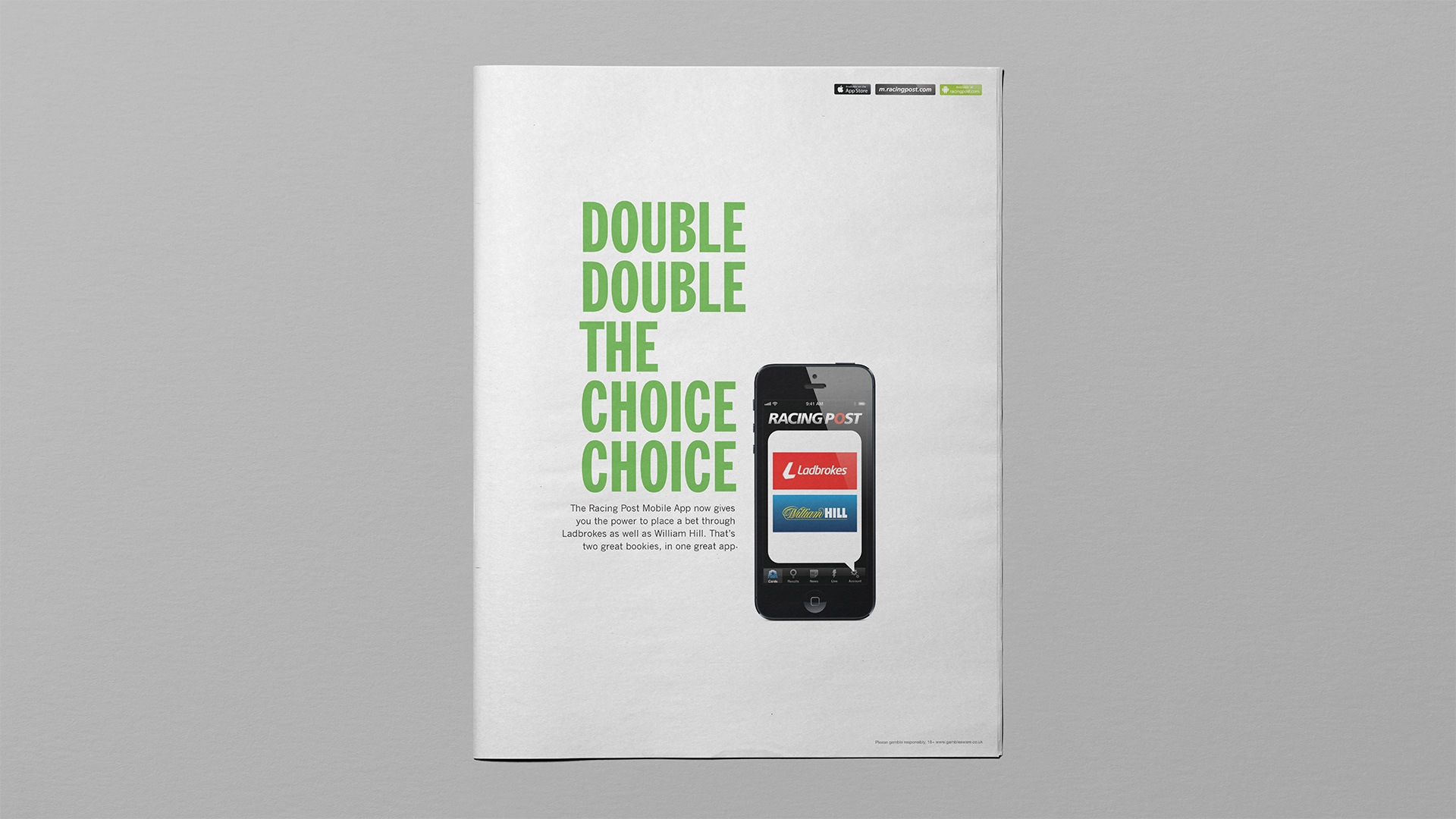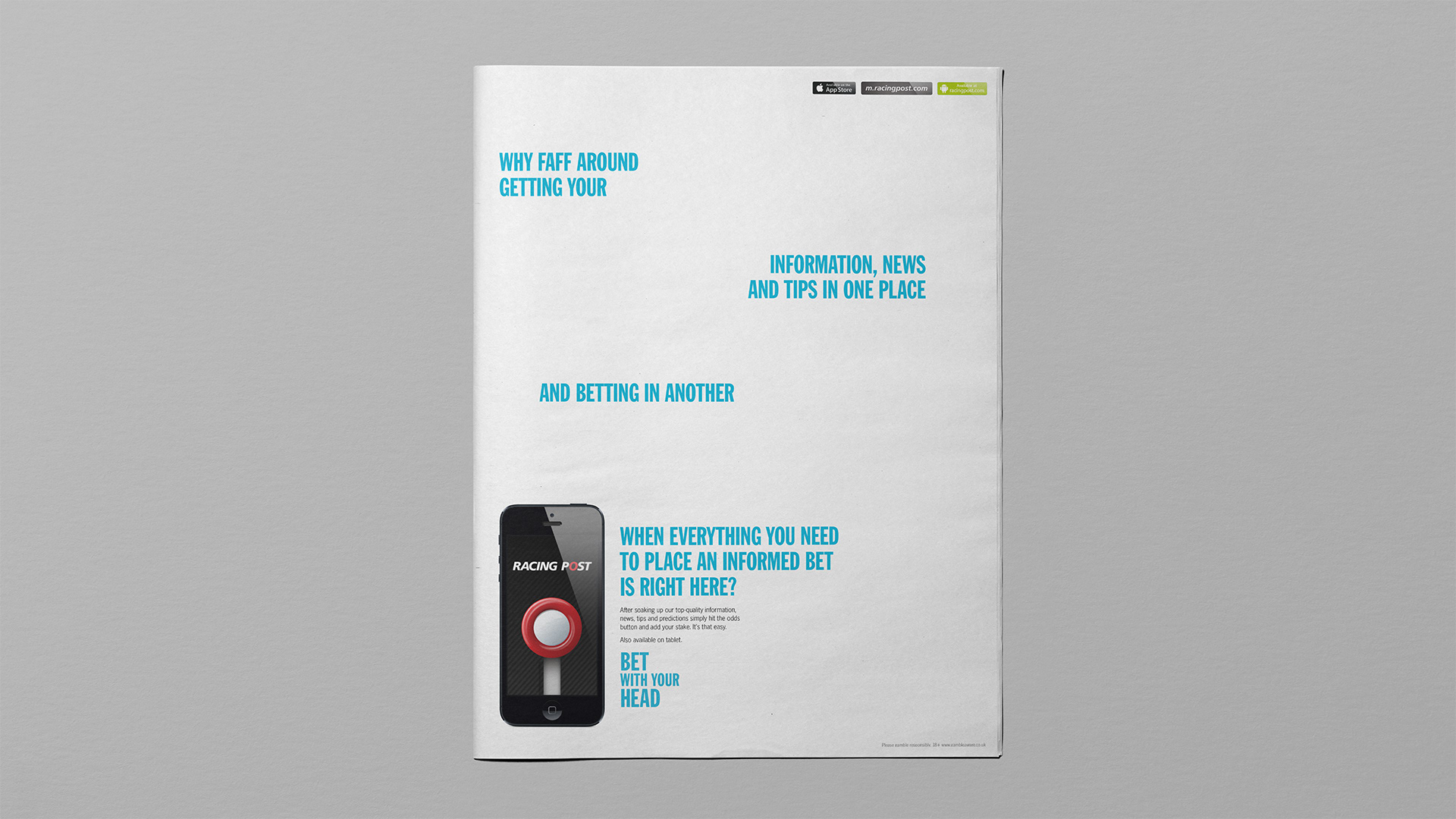 The tone of voice is clear, playful and intelligent. This helps position Racing Post as a relatable, reliable and authorative source for information and betting.